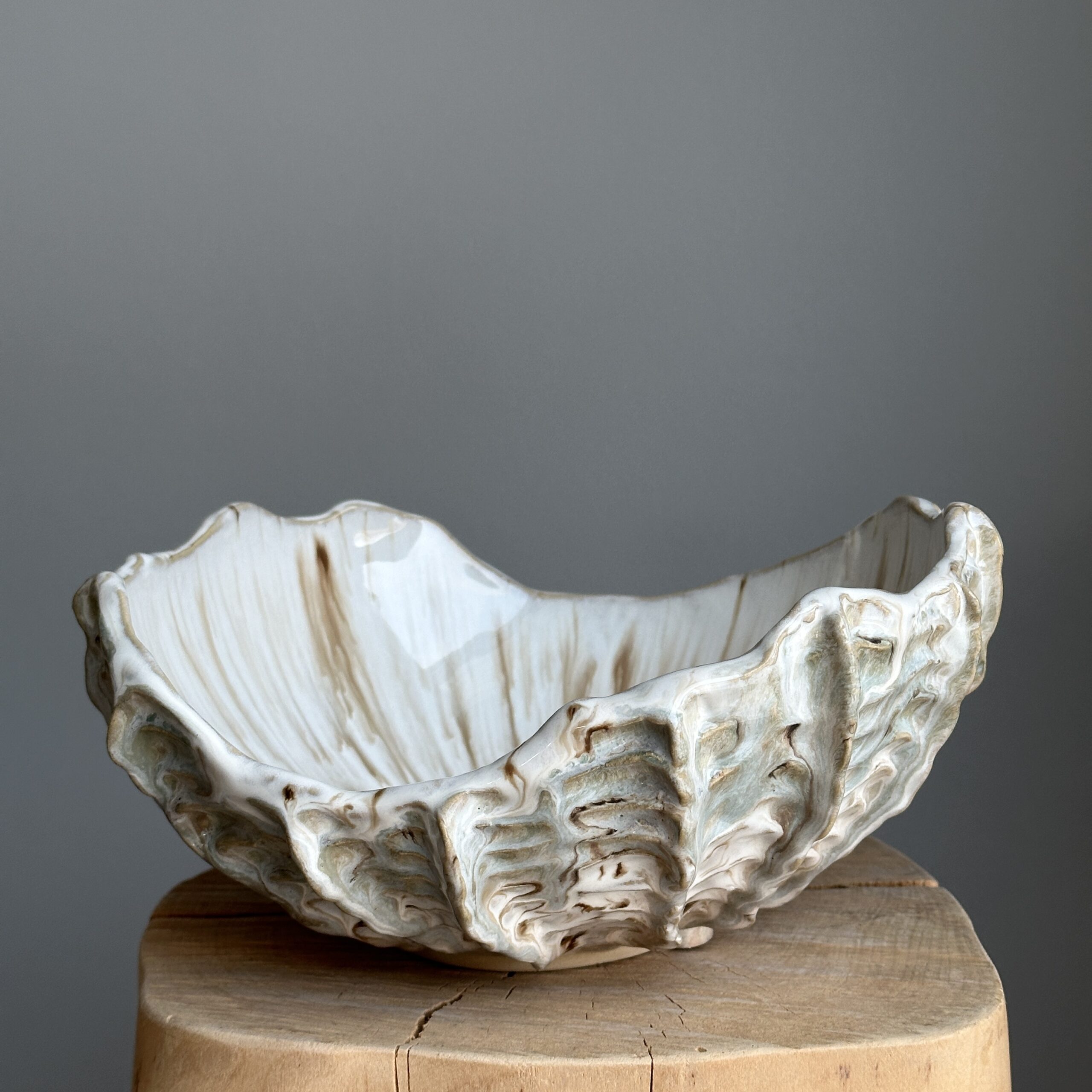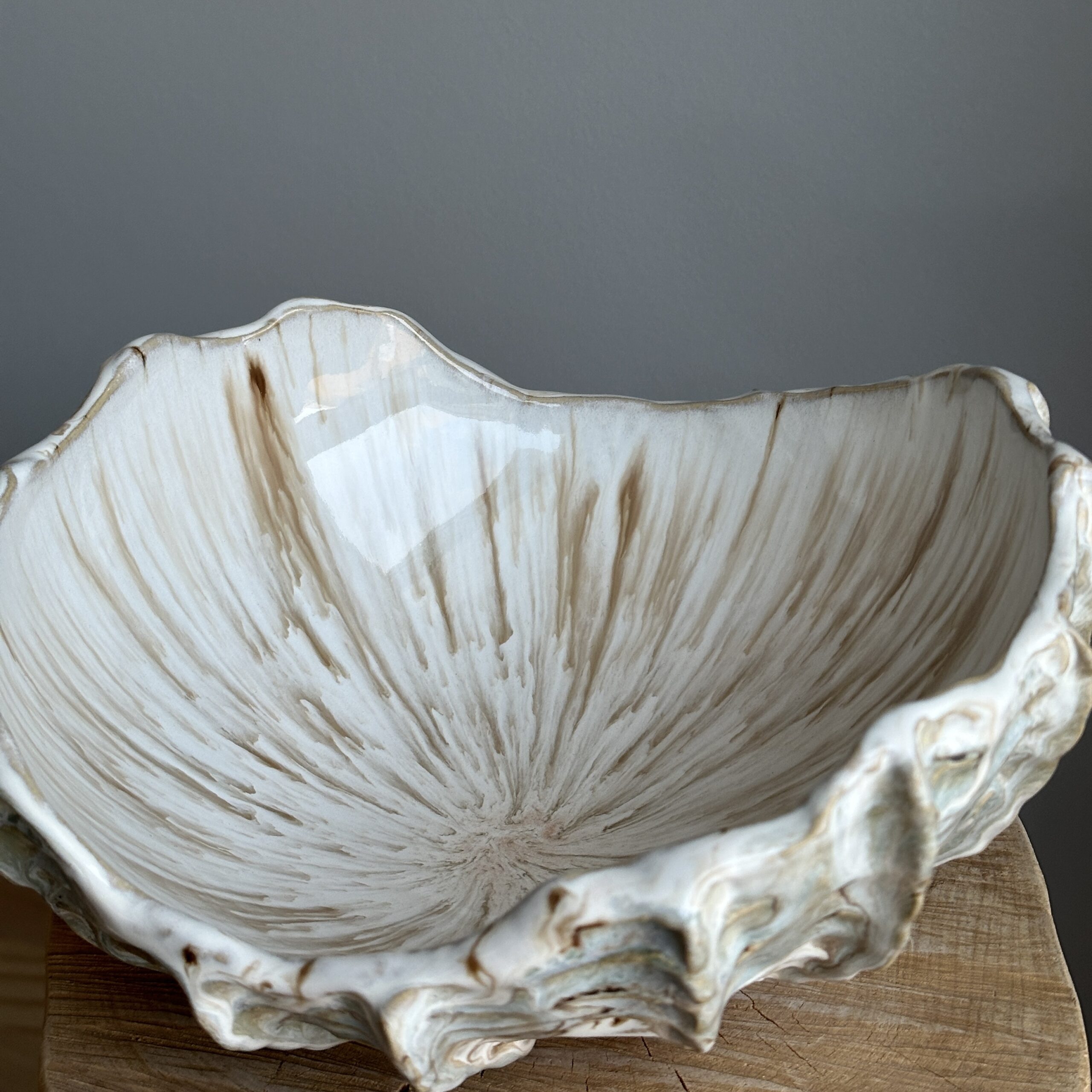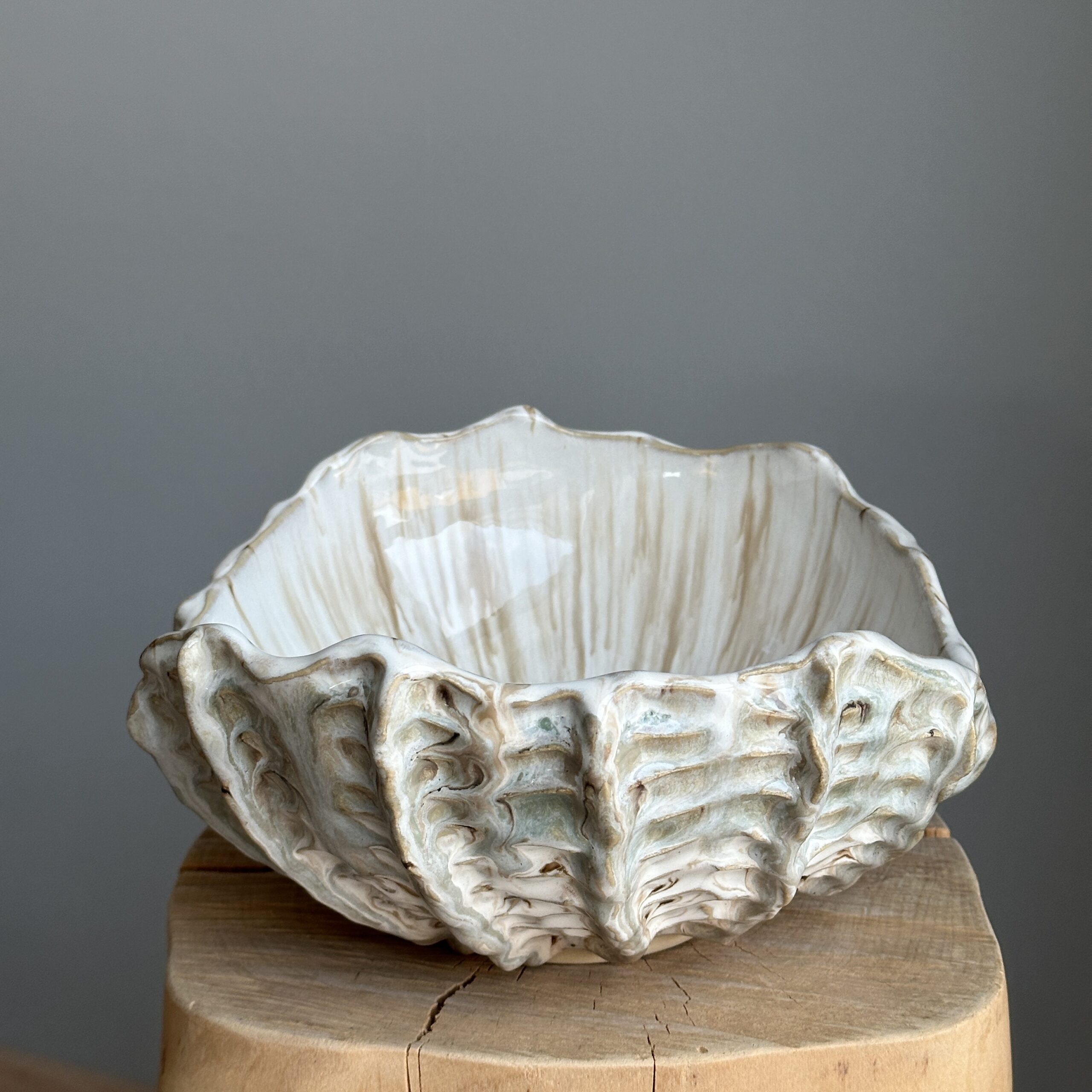 BØLGESKVULP med morgendis er en keramikskål, der kombinerer kunsthåndværk og naturinspiration i en harmonisk og unik form – perfekt til hjem, der værdsætter ægte håndværk og nordisk enkelthed.