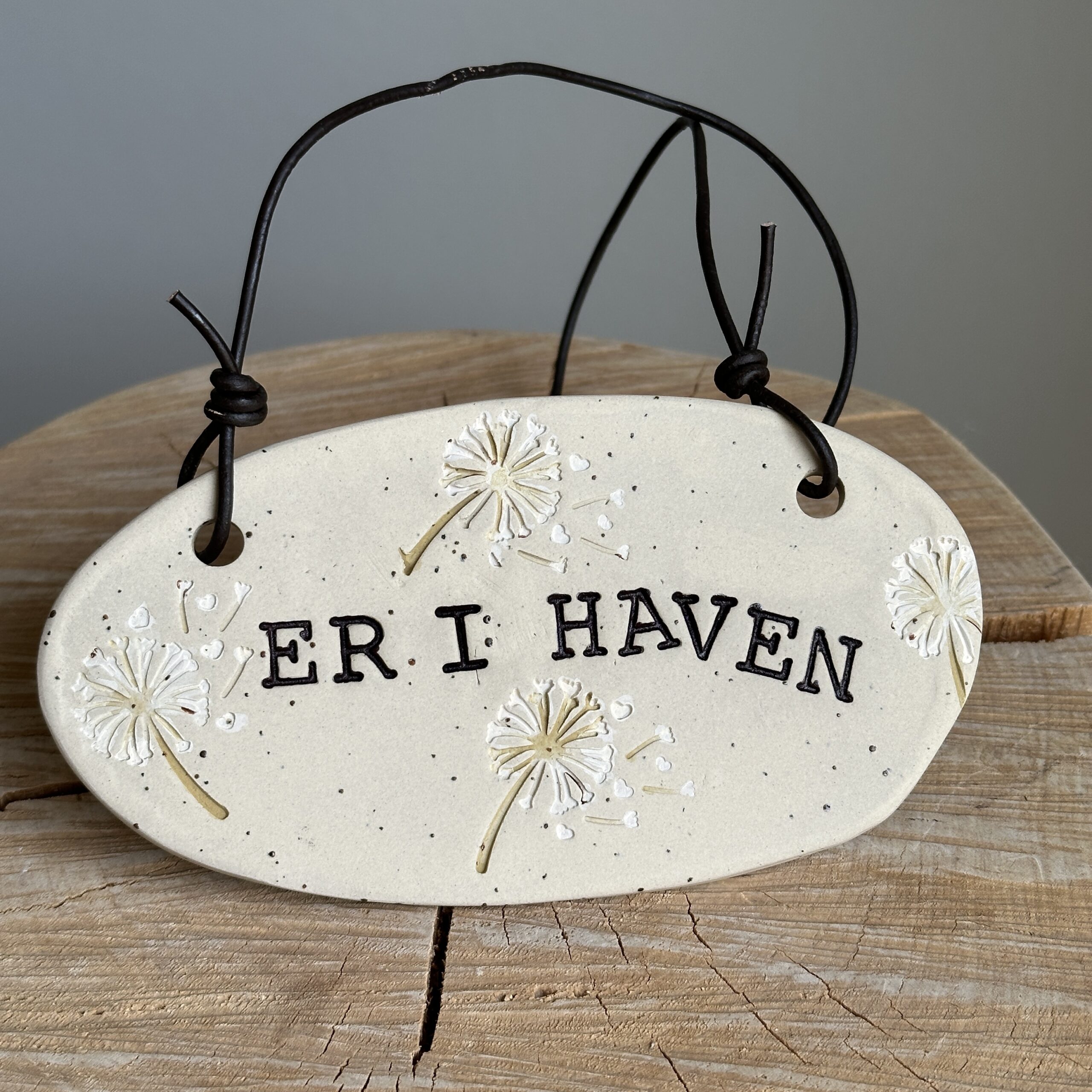 Gør det nemt for dine gæster at finde dig. Dette dekorative skilt hænges nemt på dørhåndtaget med lædersnoren. Perfekt til hus, sommerhus og have.