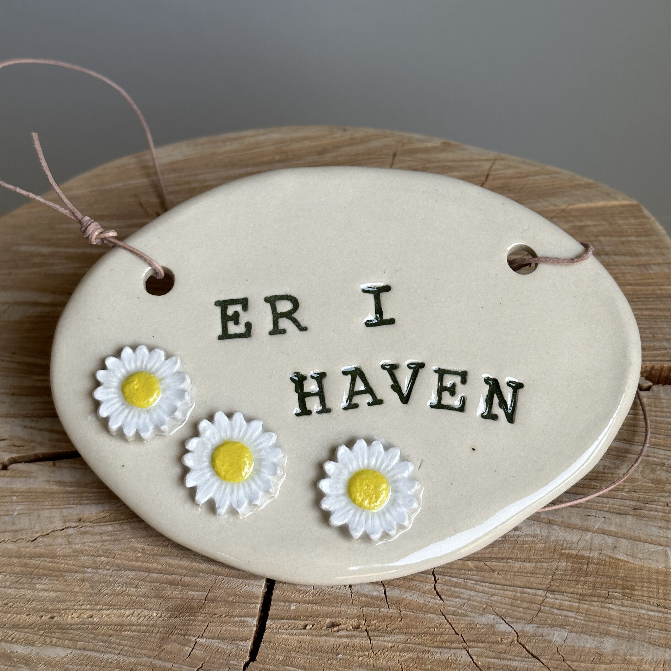 Gør det nemt for dine gæster at finde dig. Dette dekorative skilt hænges nemt på dørhåndtaget med lædersnoren. Perfekt til hus, sommerhus og have.