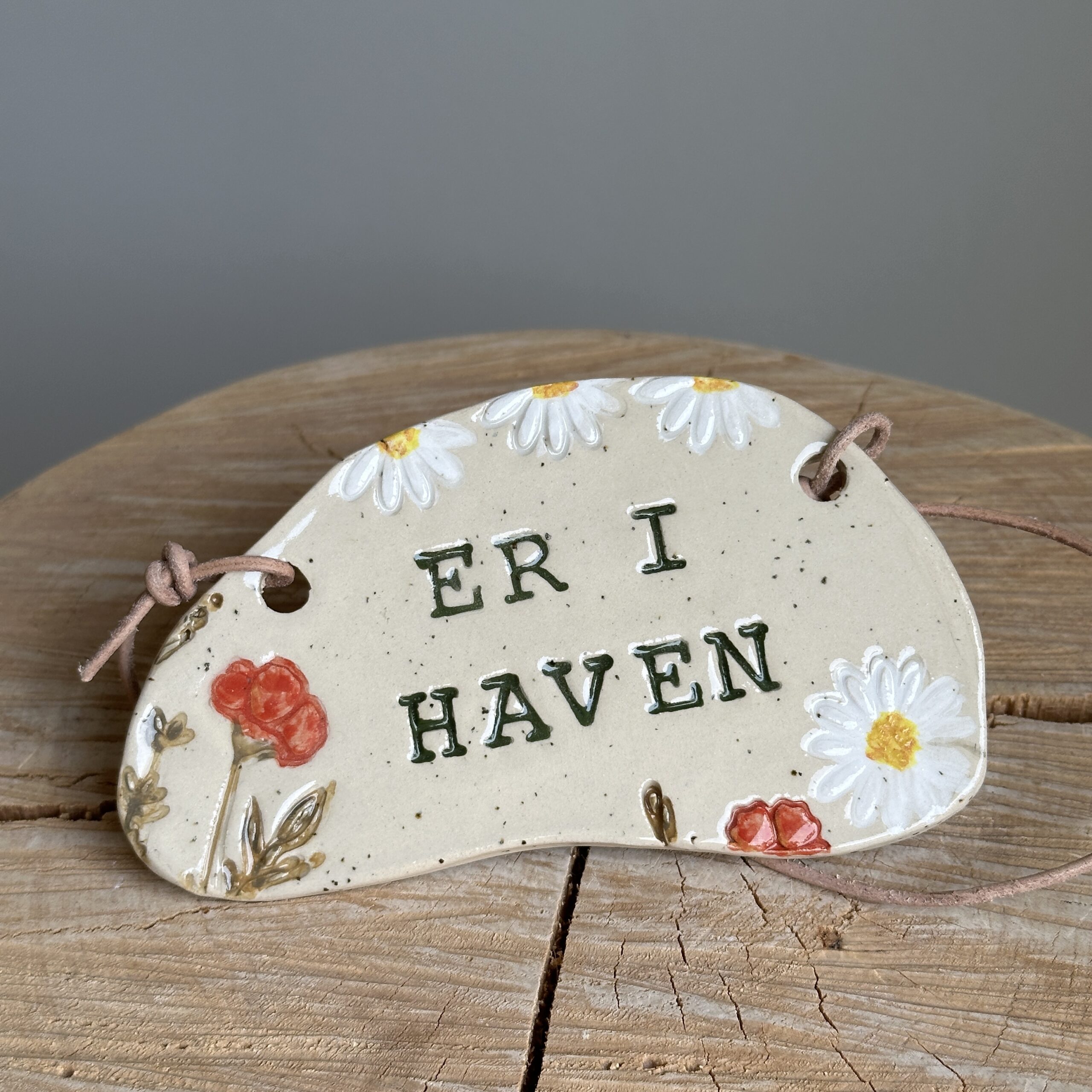 Gør det nemt for dine gæster at finde dig. Dette dekorative skilt hænges nemt på dørhåndtaget med lædersnoren. Perfekt til hus, sommerhus og have.