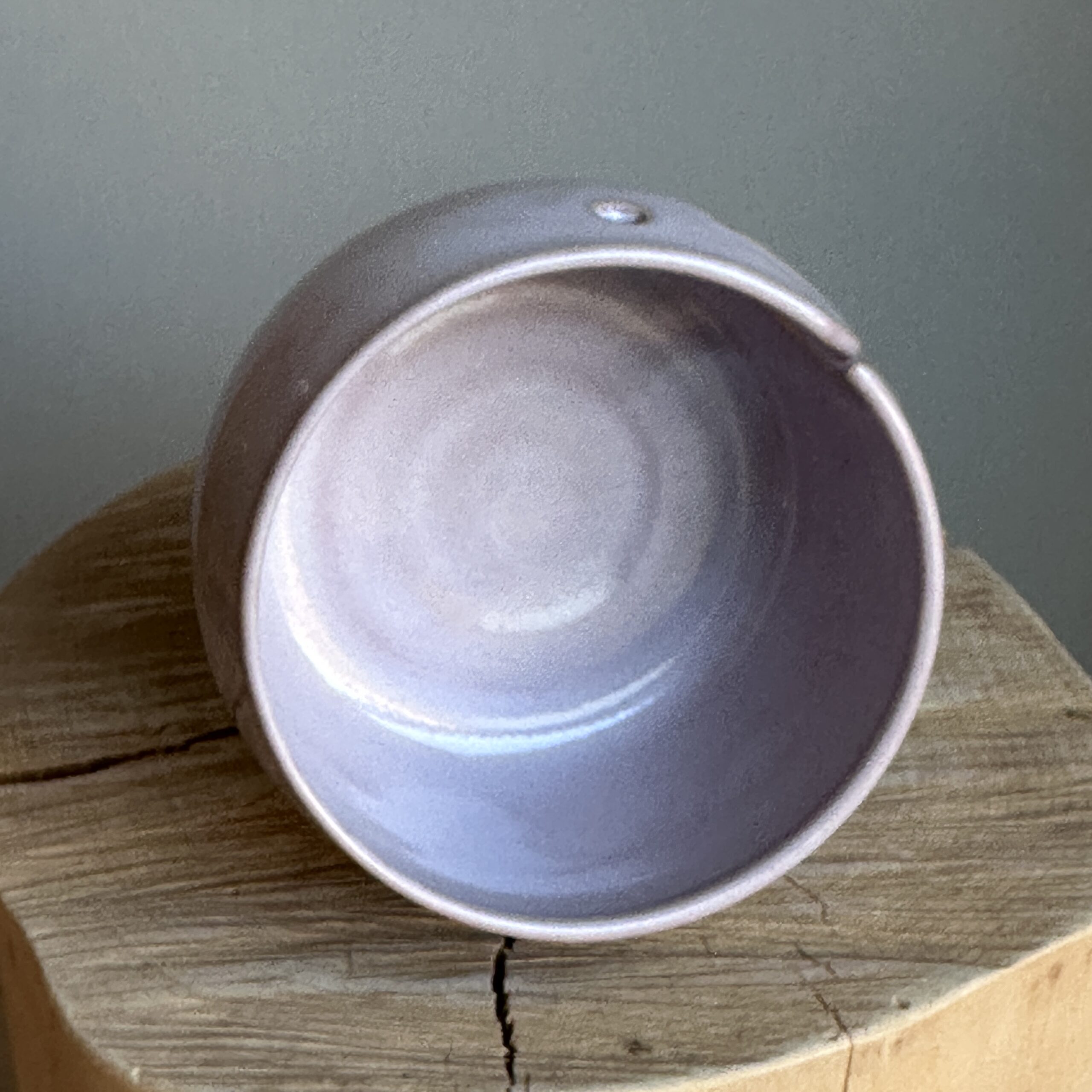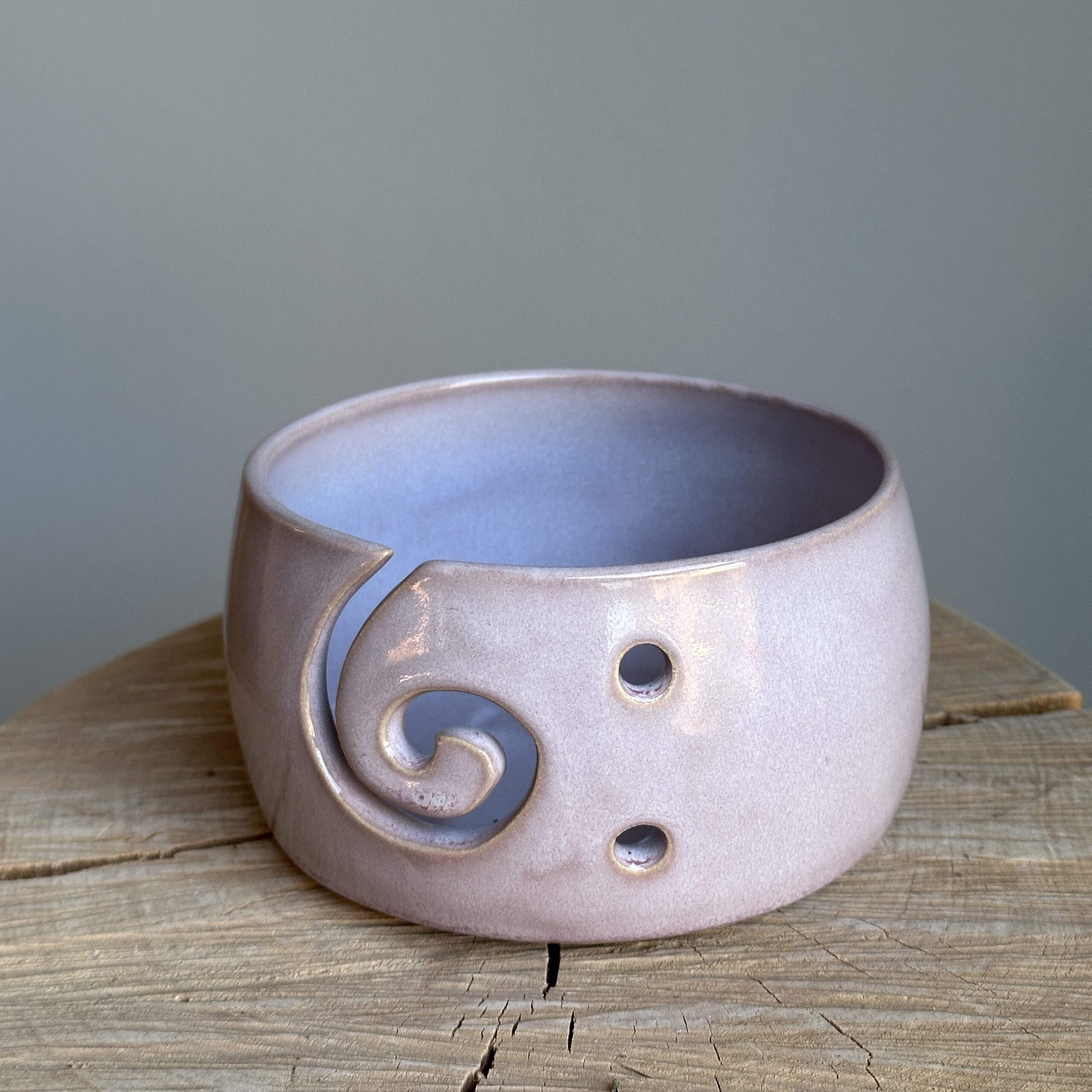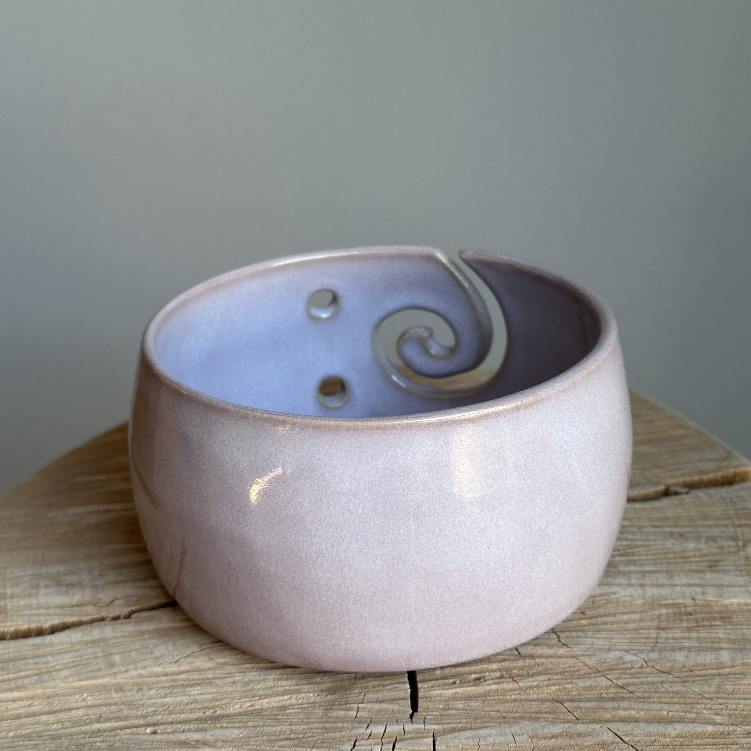 Lys lavendelfarvet skål der holder styr på dit garn så det ikke filter eller triller ind under stole eller sofa.