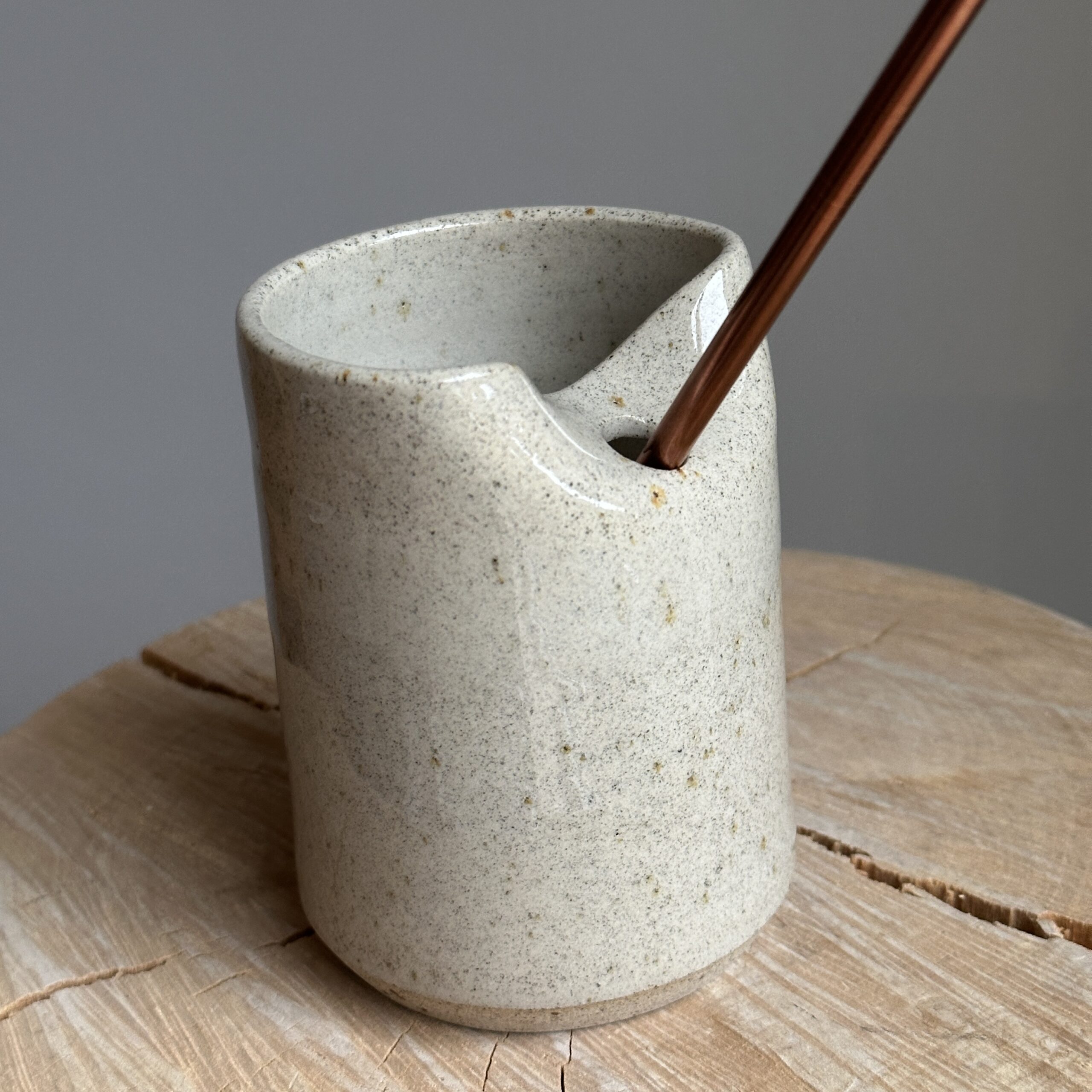 Dette skønne hånddrejede keramikkrus holder sugerøret på plads.