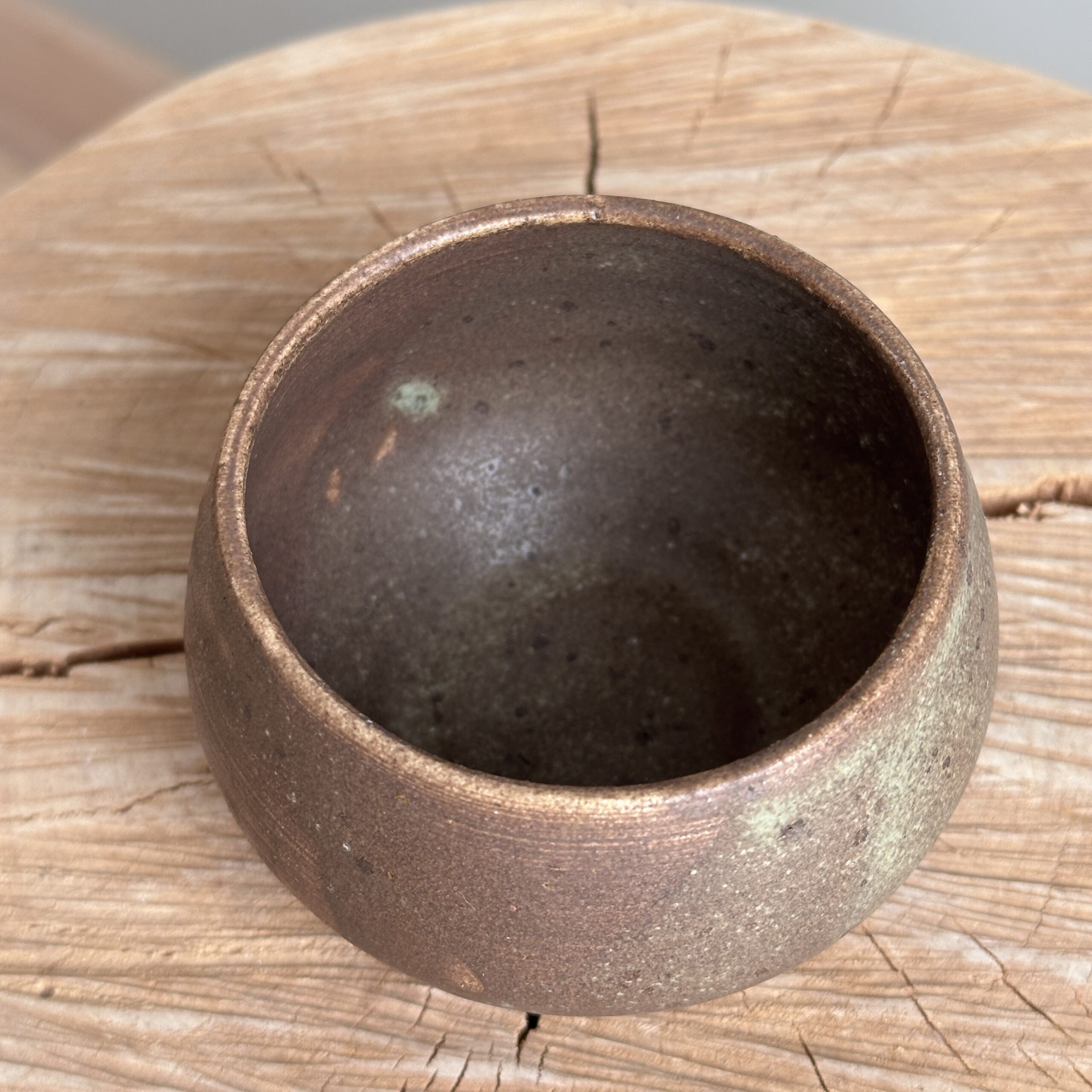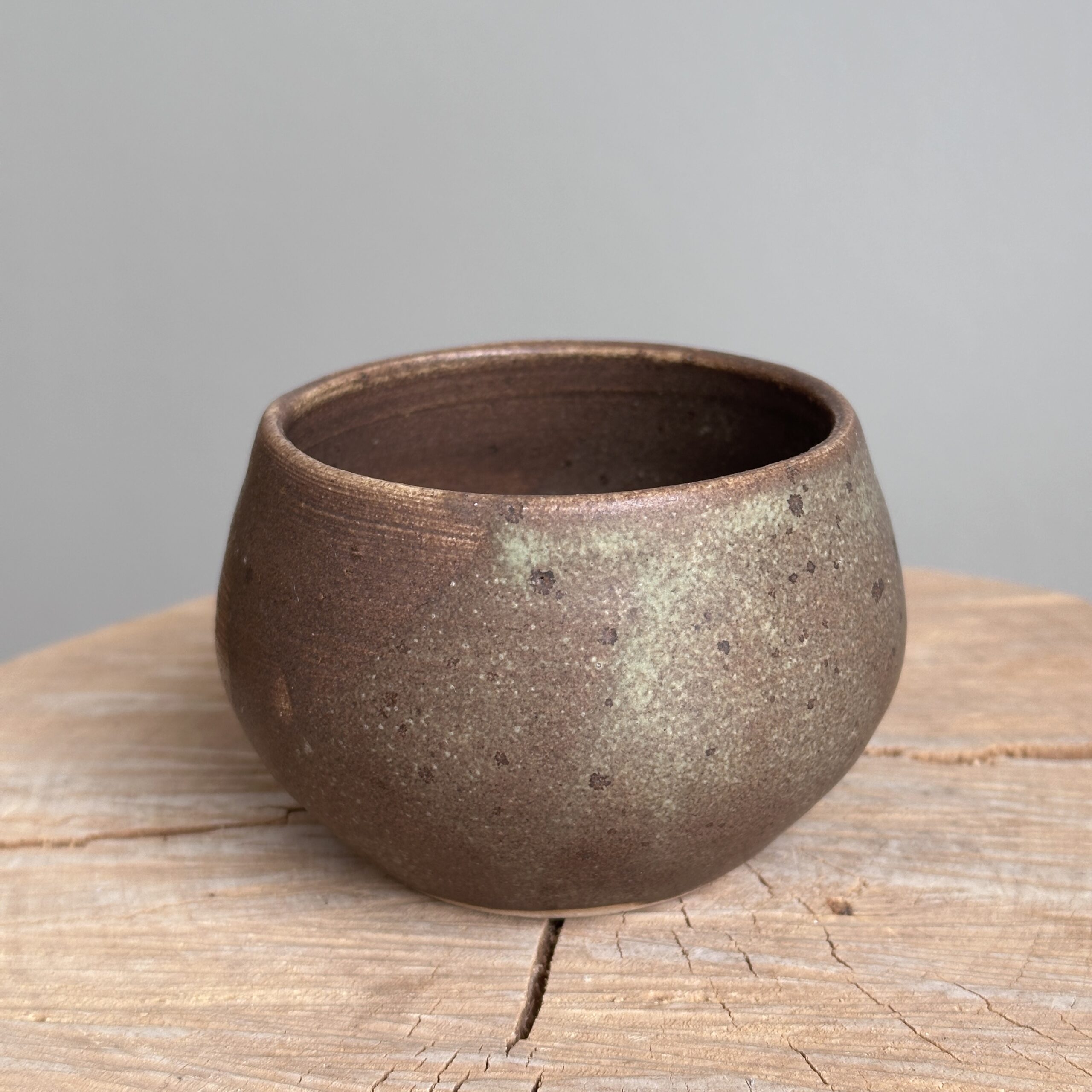 Bring naturens ro til bordet med denne håndlavede skål, formet i hånden og glaseret med en jordnær brun/irgrøn glasur. Farvespillet minder om nordiske landskaber – mos, sten og jord – og giver hvert stykke sin egen unikke karakter.