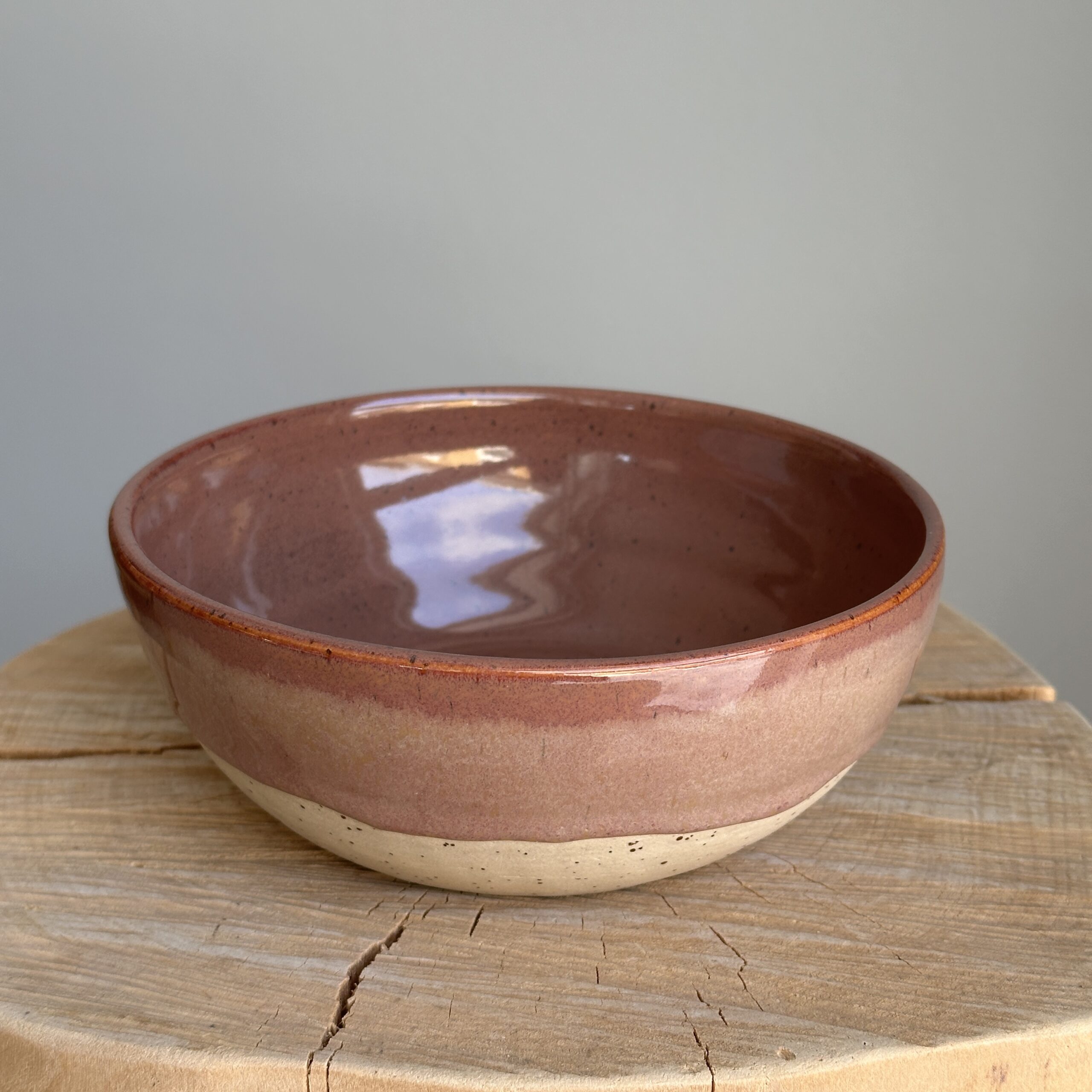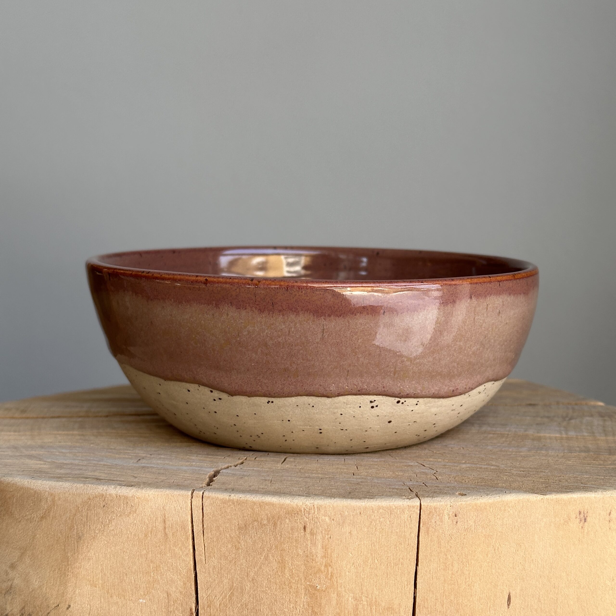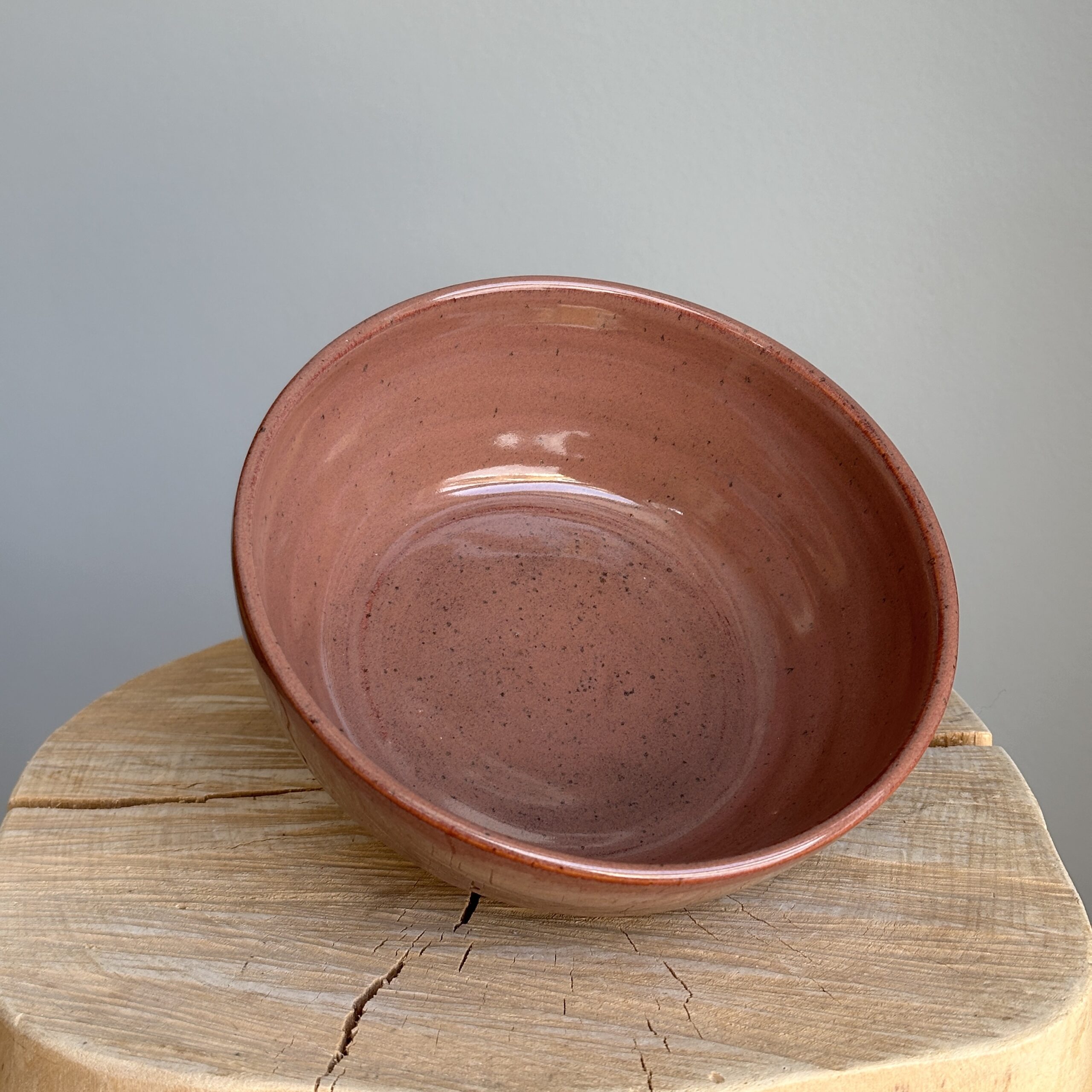 Skøn morgenmads- snackskål i keramik med den vidunderlige aftenrøde glasur med en lidt tyk kant nederst mod ler med struktur der føles silkeblødt.