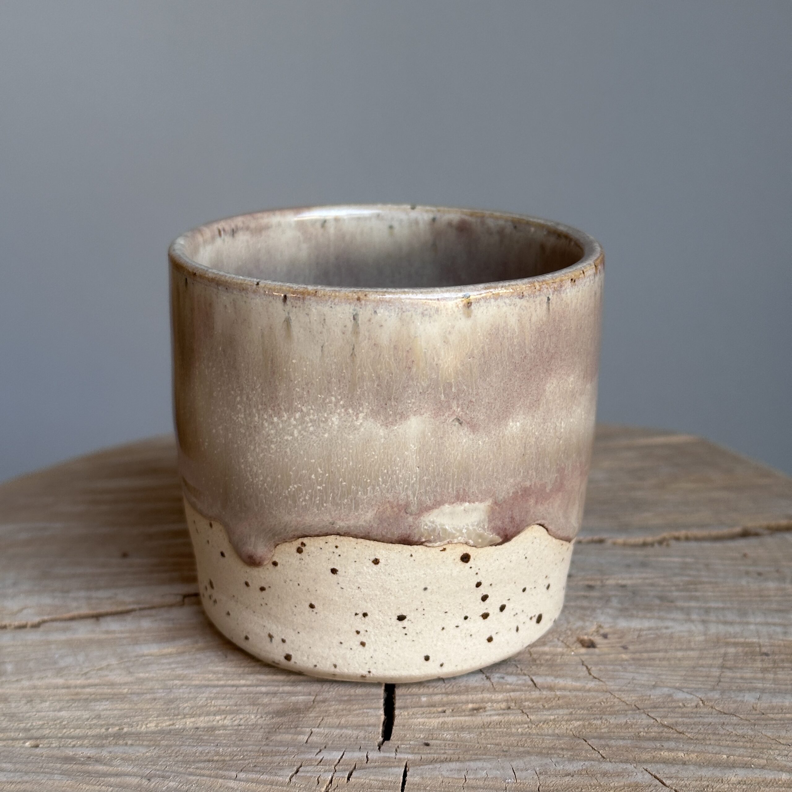 Glasuren er en poetisk hyldest til dagens sidste lys. Hver kop er drejet i hånden i lyst stentøj, glaseret med en skøn glasur, der løber som aftenlyset hen over horisonten. Lavapletter i leret bryder det rolige udtryk og tilføjer karakter og dybde – som stjerne på en gryende nattehimmel. Koppen er drejet og glaseret i hånden, hvilket giver hver enkelt kop sin egen personlighed og et strejf af uperfekt skønhed. Koppen er skabt til varme hænder og stille stunder.