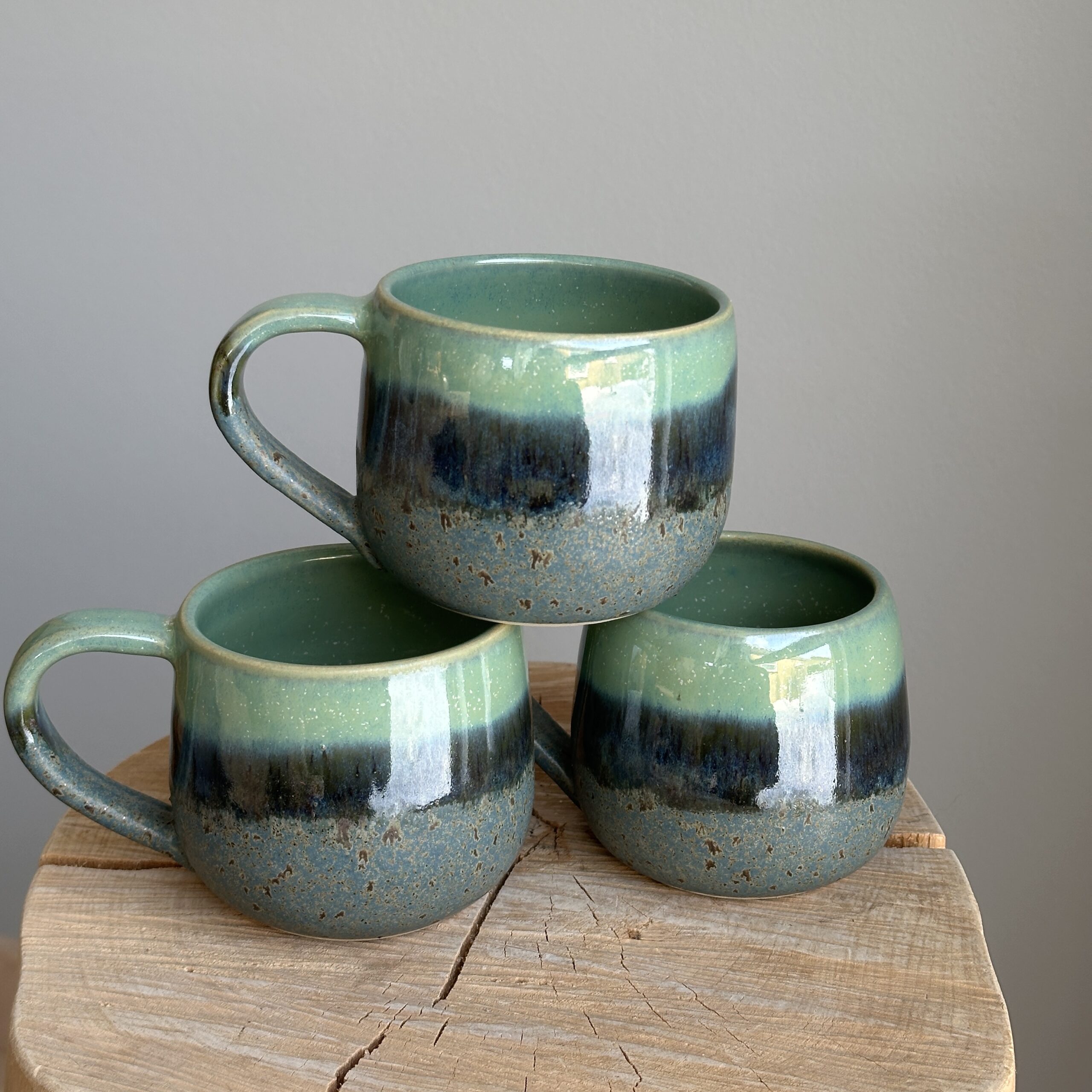 Hver krus er drejet, glaseret og brændt i hånden og derfor er IKKE TO KOPPER HELT ENS. Farver og overflader varierer smukt og giver hver “Søbred”-krus sit eget unikke udtryk.